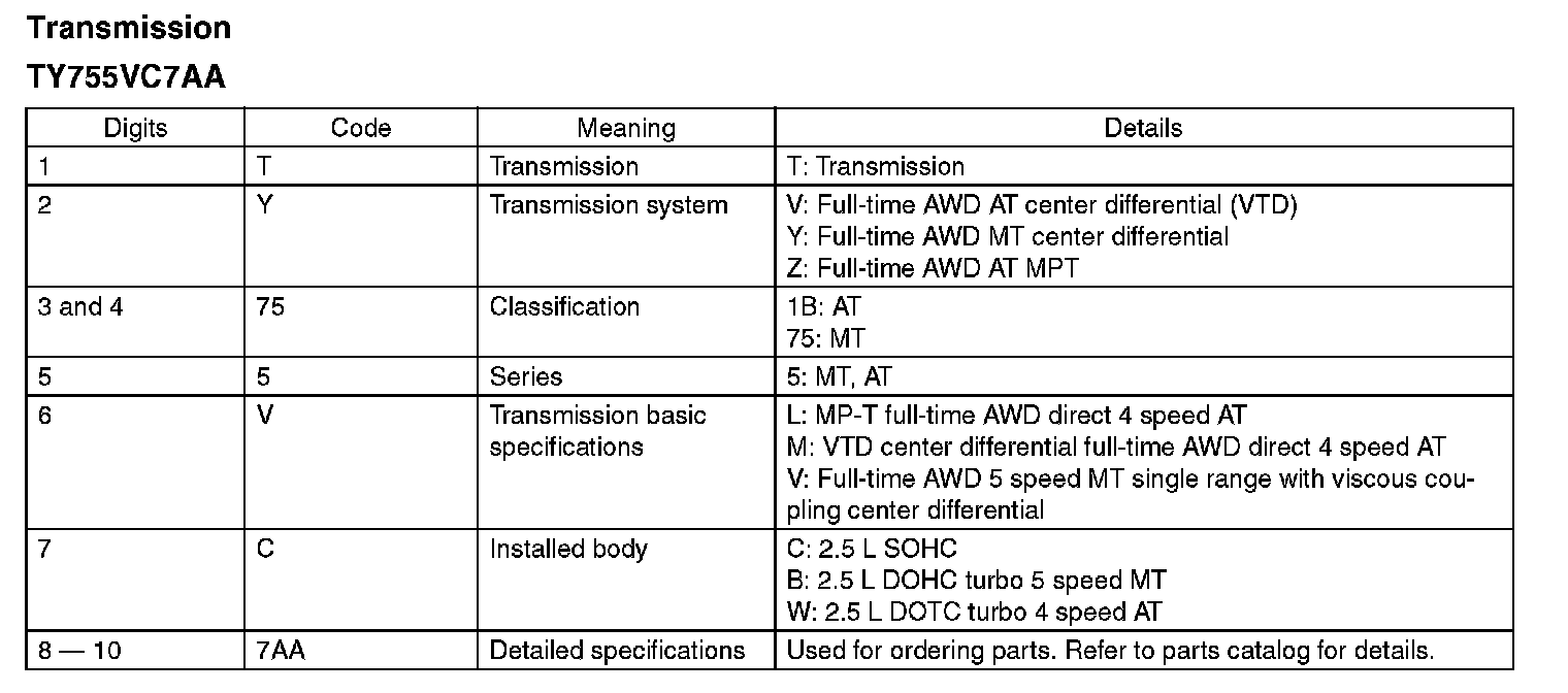 The engine and transmission type are as follows.