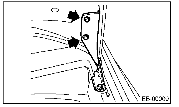 1. Use a hinge mounting holes to align the front hood longitudinally and laterally.