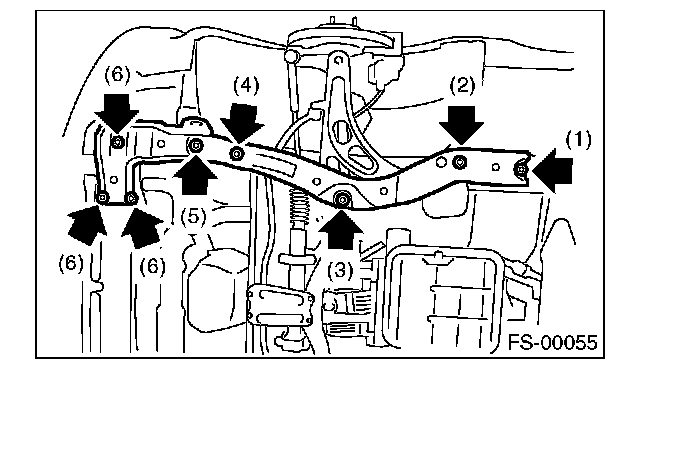 NOTE: Loosen bolt (1) and leave a few threads caught, then remove the bolts in the order of (2), (3), (4), (5), and (6).