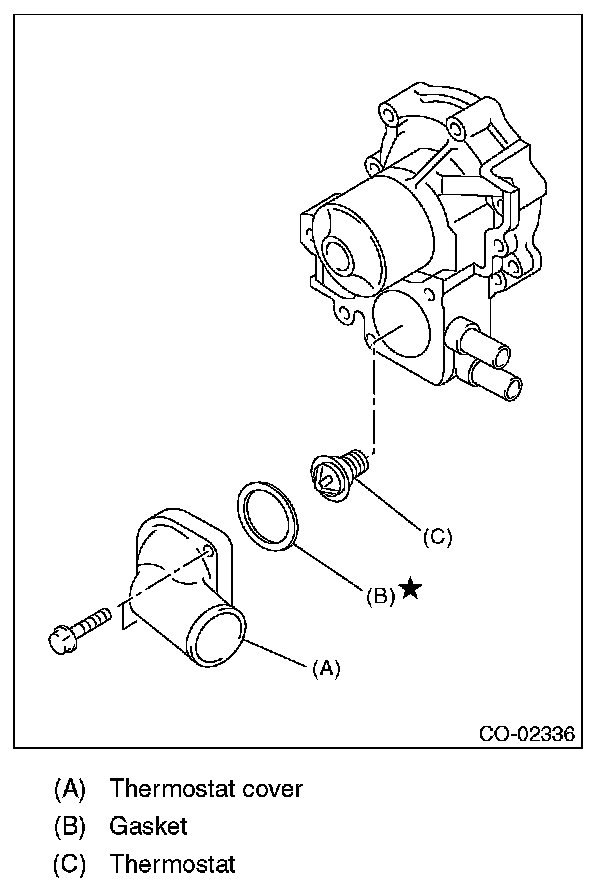 6) Remove the thermostat cover, and then remove the gasket and thermostat.