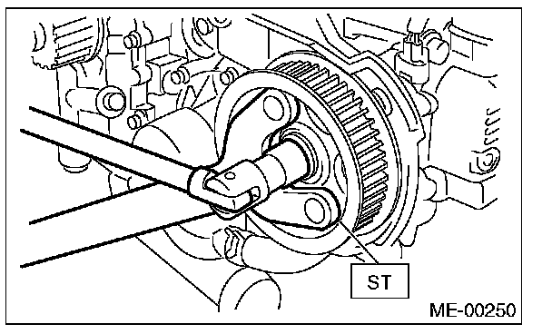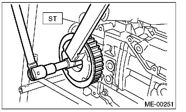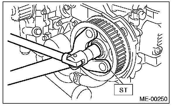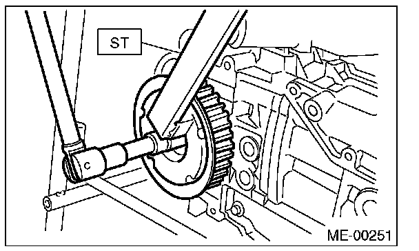 7) Using ST, fasten the cam sprocket No. 1 and remove from the cam shaft.