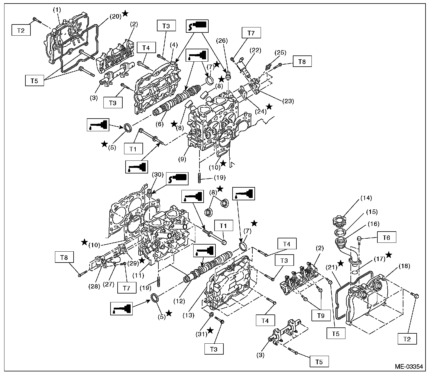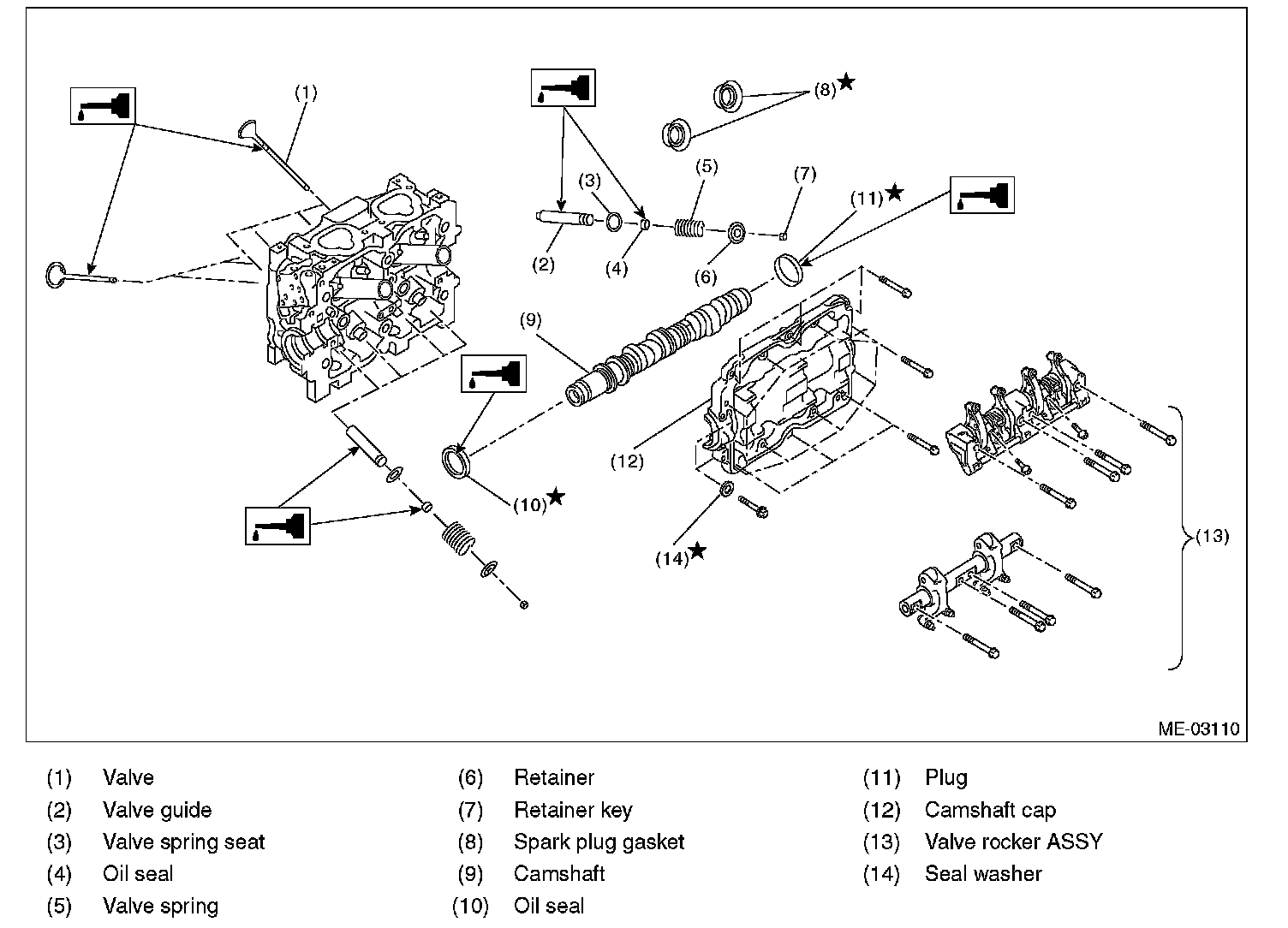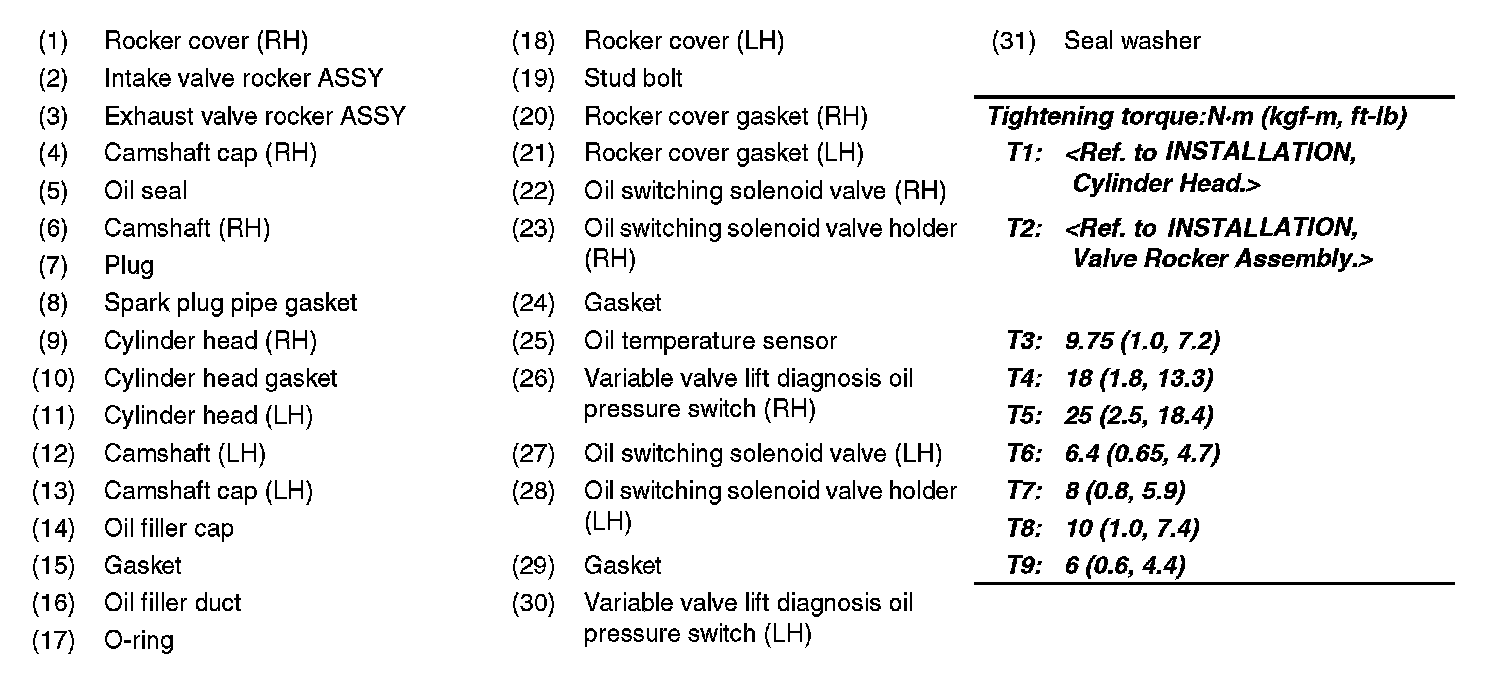 NOTE: Perform the work with the engine installed to body when replacing a single part. Refer to "Valve Clearance" for preparation.