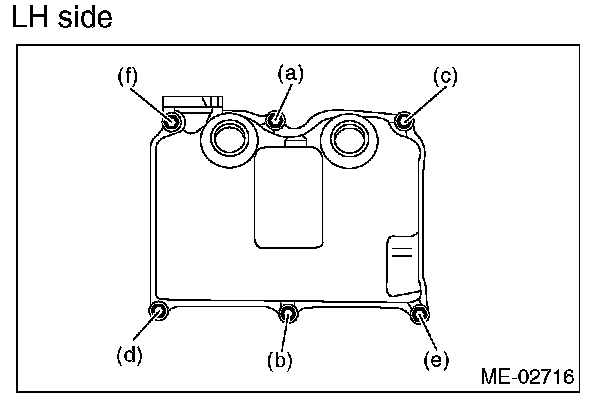 3) Tighten all bolts to 69 N-m (7.0 kgf-m, 50.9 ft-lb) in alphabetical sequence.