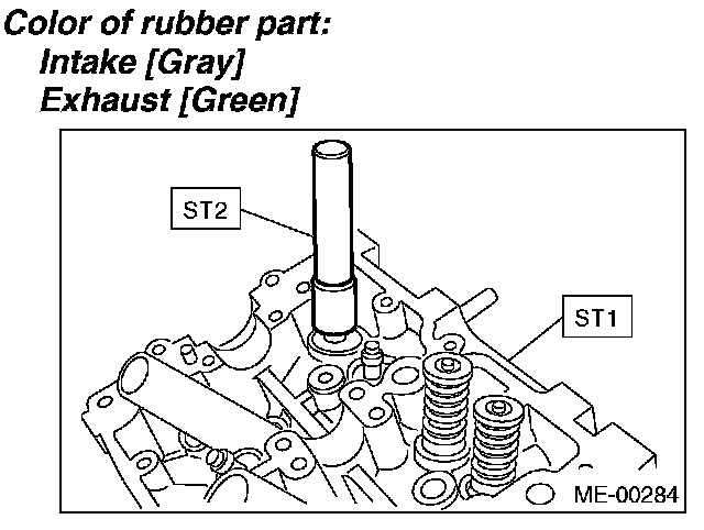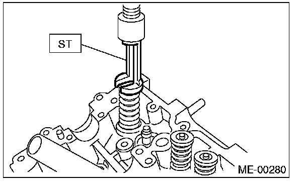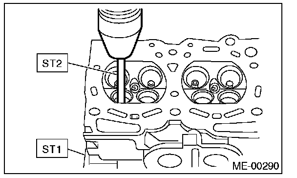 1) Place the cylinder head on ST1 with the combustion chamber upward so that valve guides fit the holes in ST1.
