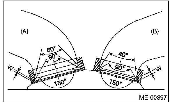 Inspect the intake and exhaust valve seats, and correct the contact surfaces with a valve seat cutter if they are defective or when valve guides are replaced.