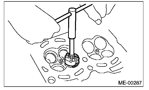 7) Ream the inside of valve guide using ST. Put the ST in valve guide, and rotate the ST slowly clockwise while pushing it lightly. Bring the ST back while rotating it clockwise.