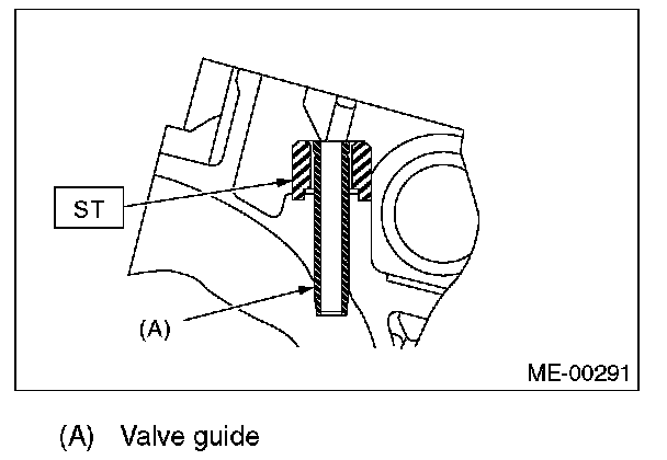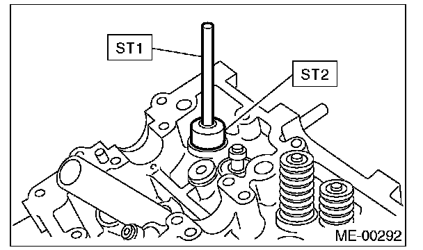 2) Insert the ST2 into valve guide and press it down to remove the valve guide.
