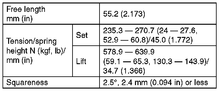 1) Check the valve springs for damage, free length, and tension. Replace the valve spring if it is not within the standard value presented in the table.