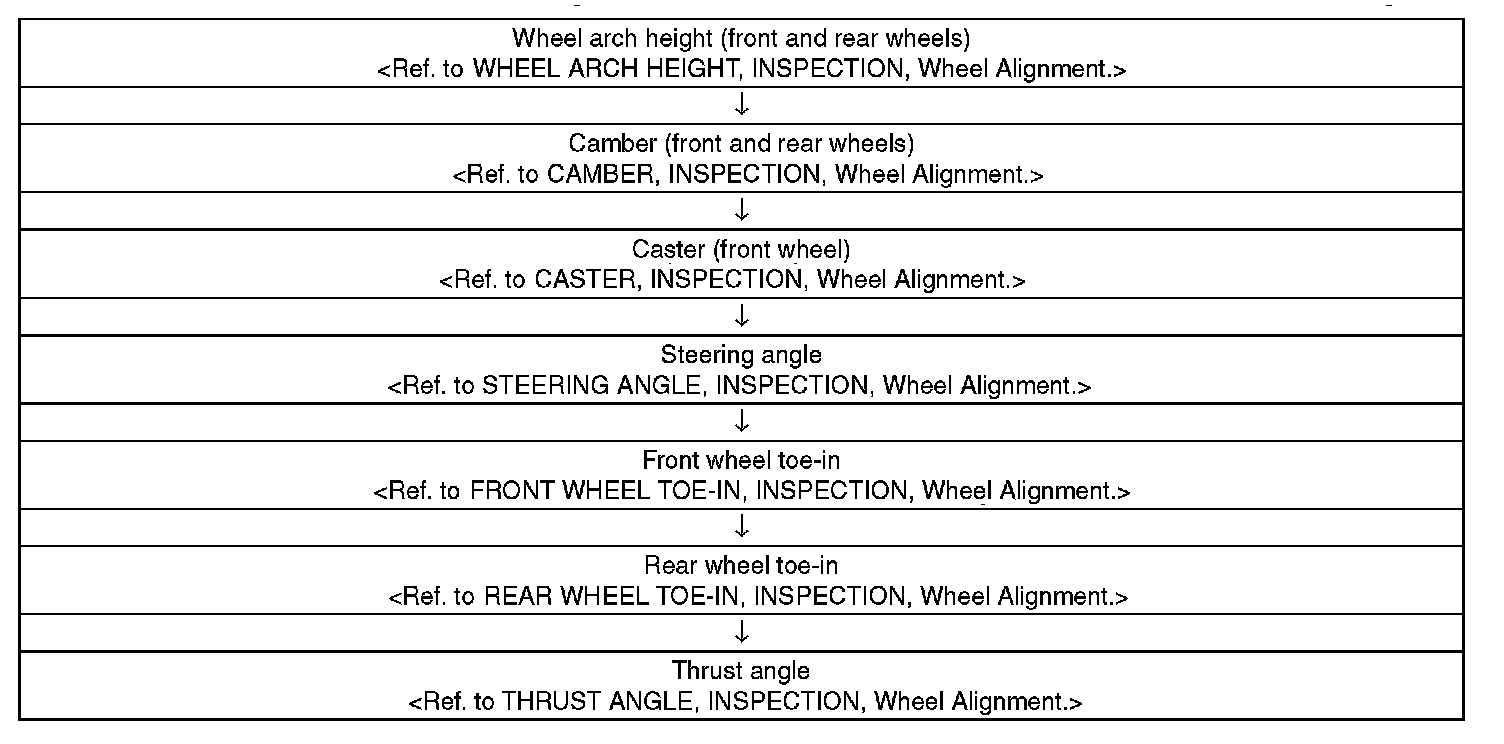 Check, adjust and measure the wheel alignment in accordance with the procedures indicated in the figure.