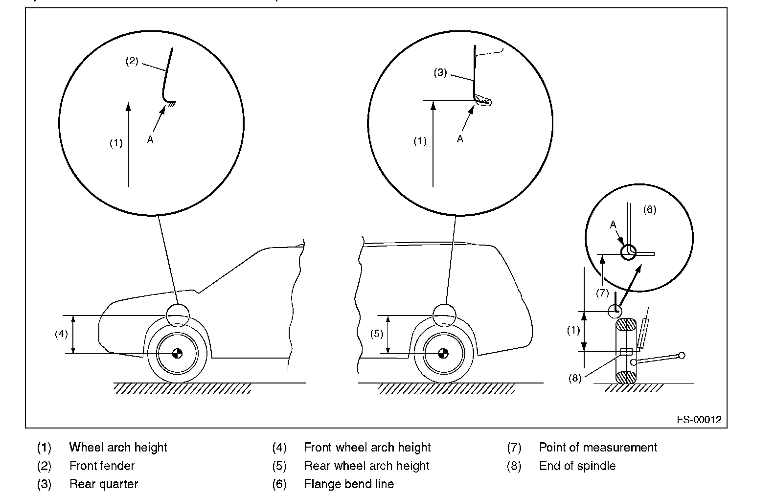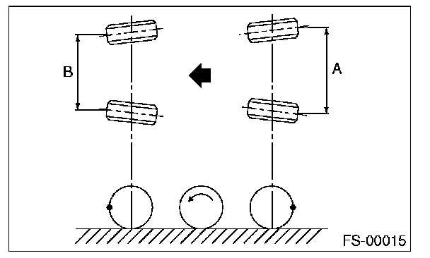 2) Mark the centers of both right and left tires, and measure the distance "A" between the marks.