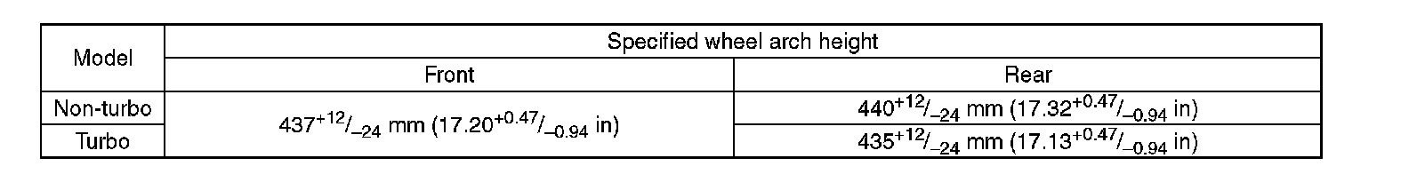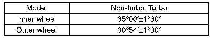 Toe-in (adjustment standard): 0±2 mm (0±0.08 in)