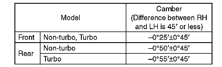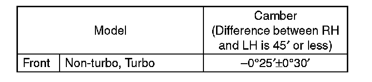 1) When adjusting the front camber, adjust it to the following value.