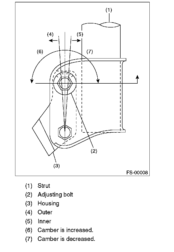 3) Turn the camber adjusting bolt so that the camber is set at specification.