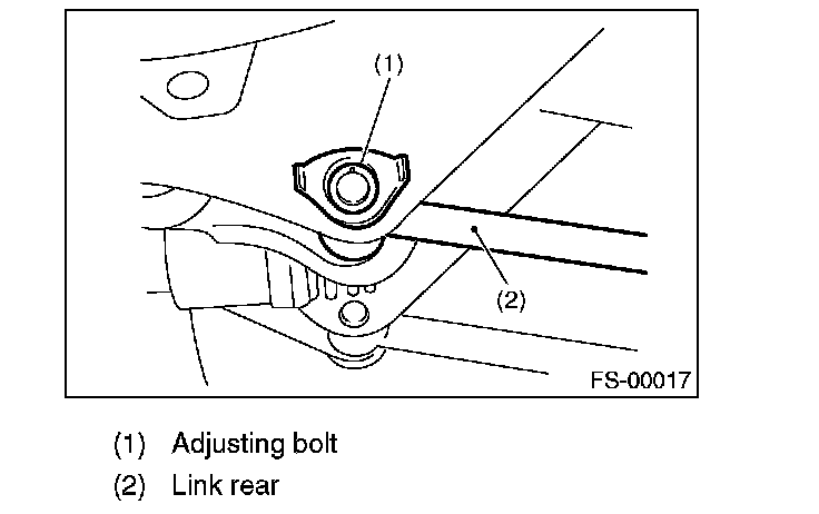 2) Turn the adjusting bolt until toe-in is within the specification.