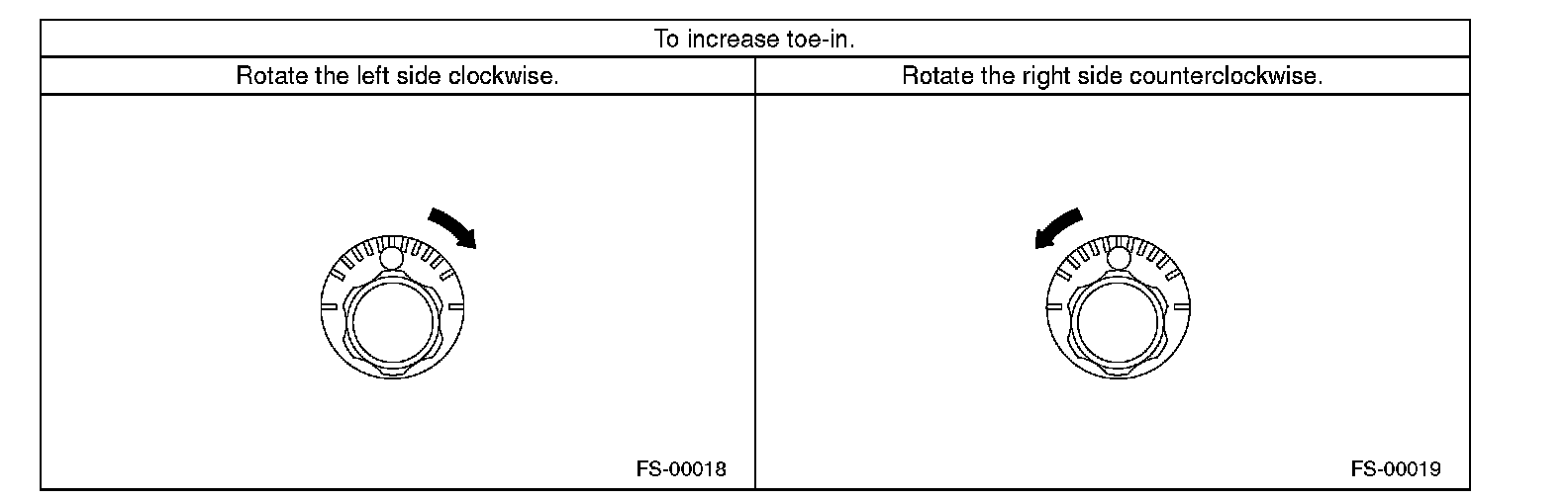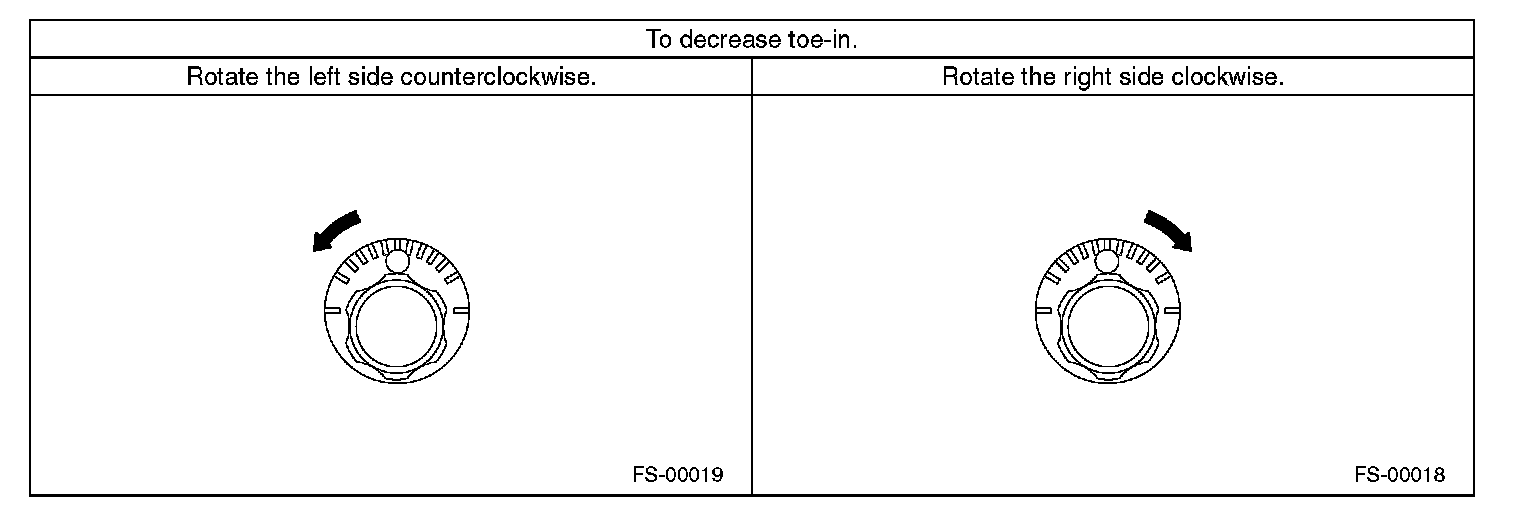 2) When one rear wheel is adjusted in a toe-in direction, adjust the other rear wheel equally in toe-out direction, in order to make the thrust angle adjustment.