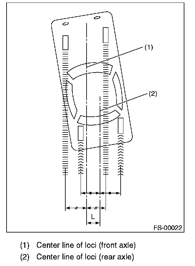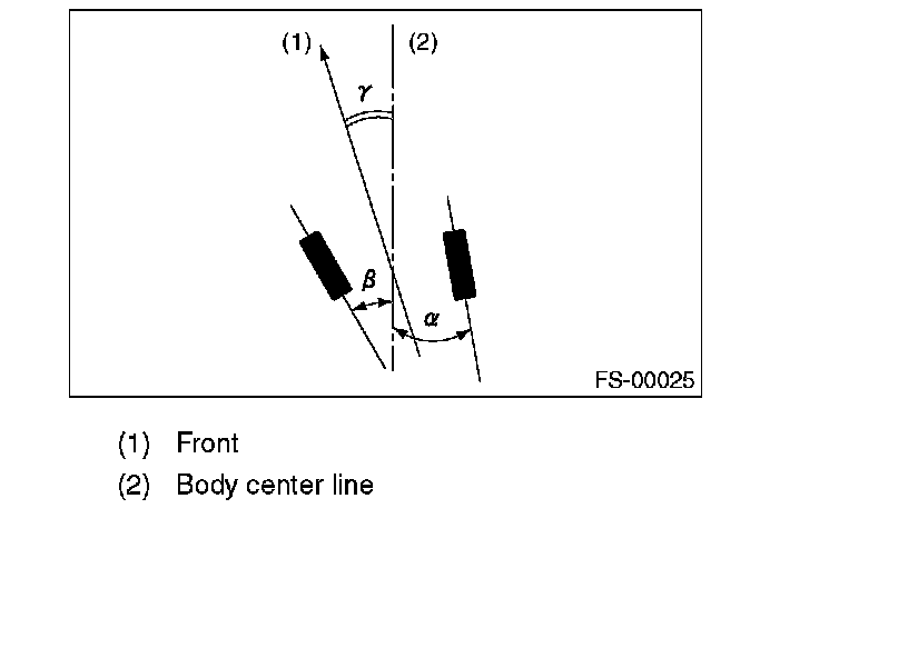 NOTE: The thrust angle is the average value of the right and left wheel toe angles with regard to the center line of the body. The vehicle will advance towards the thrust angle direction while swaying in a angle direction.