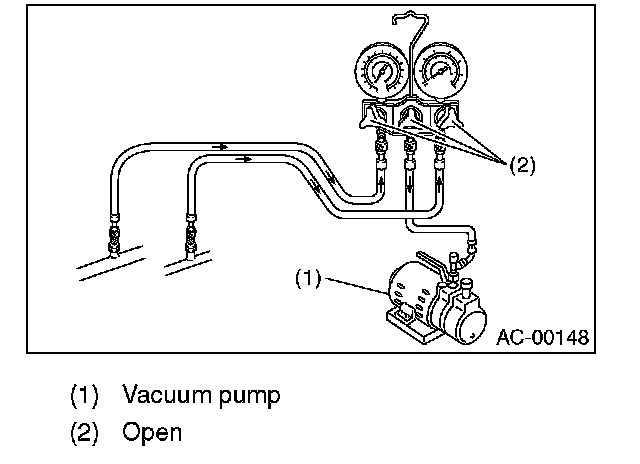 Before charging the refrigerant, evacuate the system using vacuum pump to remove air and moisture in the system. Moisture can be evaporated and removed easily even at normal temperature, if the system is evacuated using vacuum pump.
