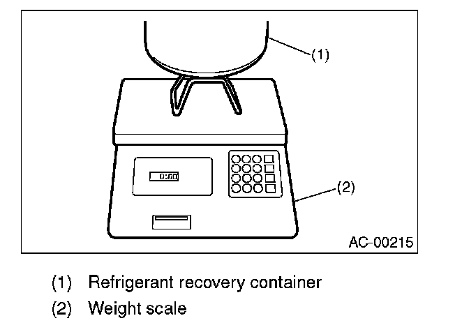 11. When a refrigerant recovery container is used, measure the refrigerant amount in use using a weight scale. Then, connect with the center manifold hose.