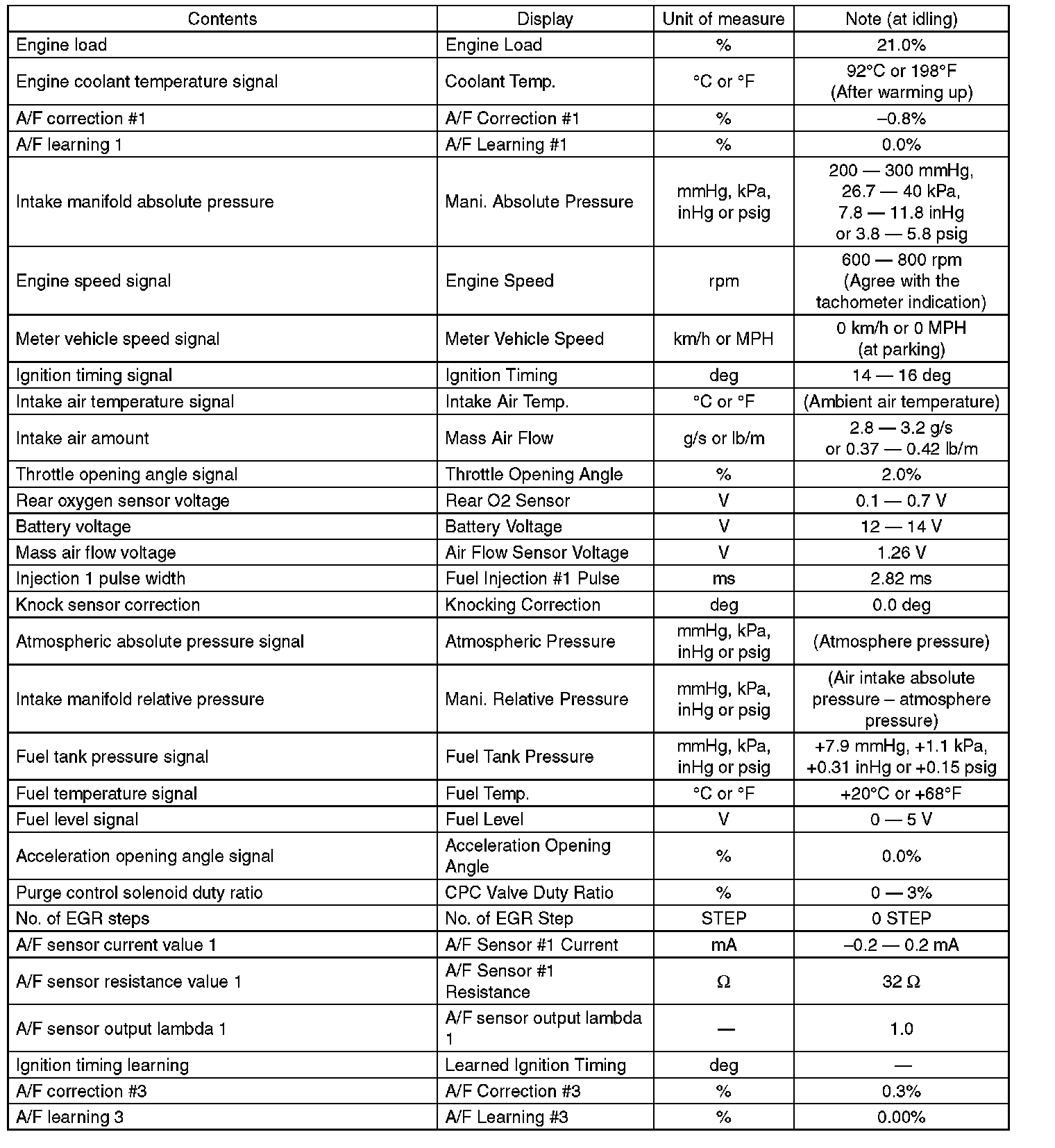 4. READ CURRENT DATA FOR ENGINE (NORMAL MODE)