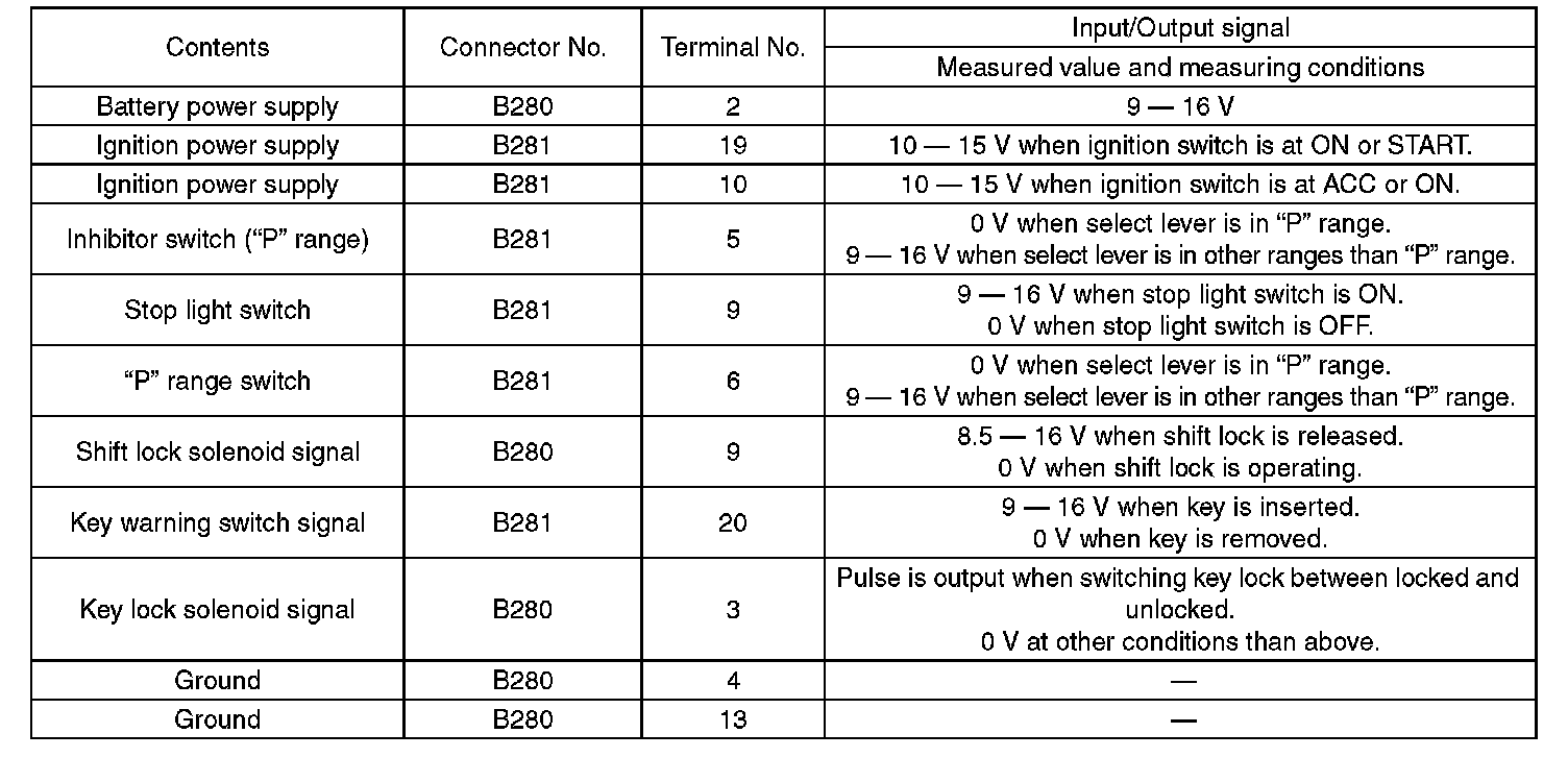 Pinout Values and Diagnostic Parameters