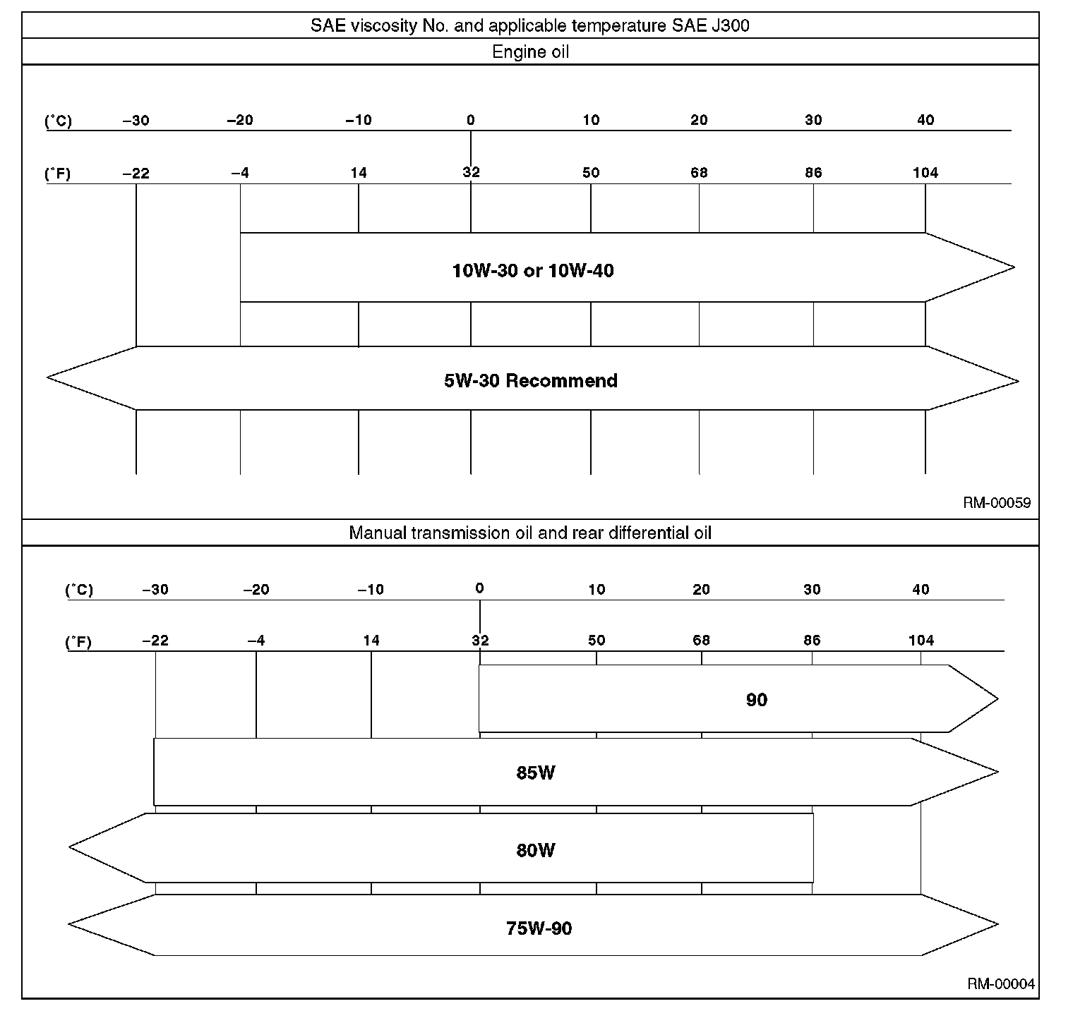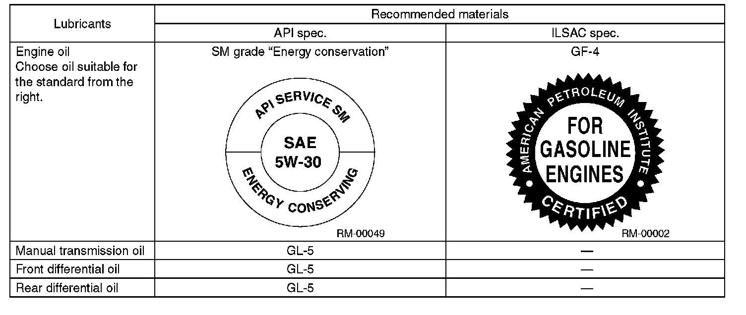 Use the lubricants shown in the given table, or equivalent. See the given table to choose the correct SAE viscosity.