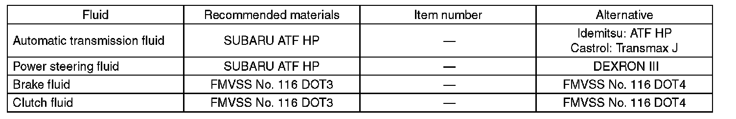 Use the fluids specified in the given table. Do not mix two different kinds or makes of fluid.