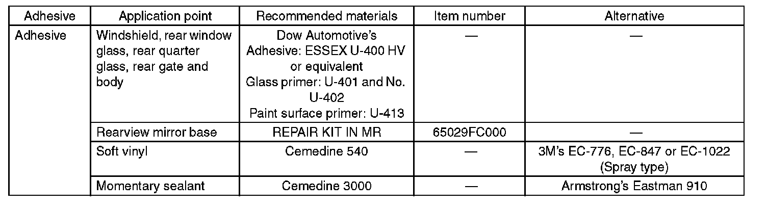 Use the adhesives shown in the given table, or equivalent.
