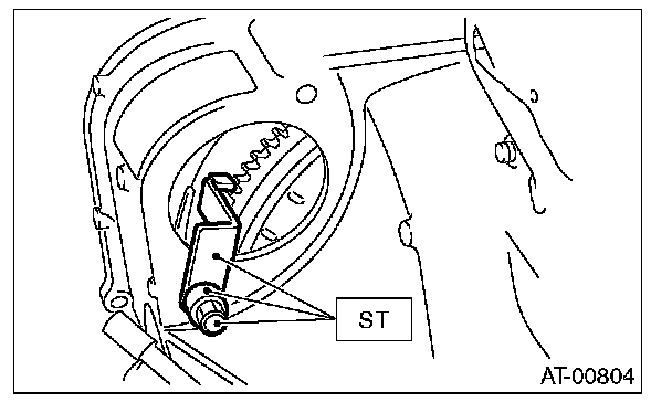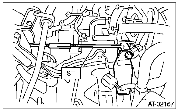 2) Insert the ST between the transmission and front drive shaft.