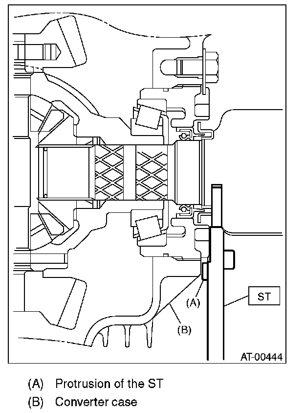 NOTE: Set the protrusion of the ST to the torque converter clutch housing.