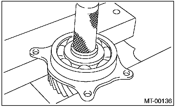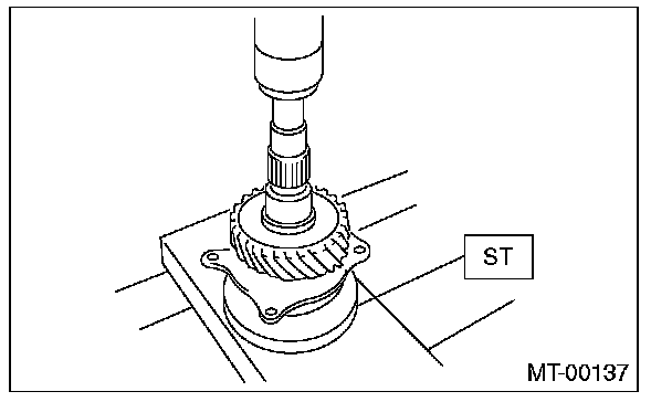 1) Set the ST against the inner race of the bearing, and install the drive shaft.