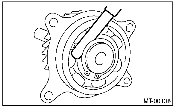 3) Measure the clearance between snap ring and inner race of ball bearing with a thickness gauge.