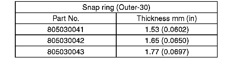 If the measurement is not within specification, select a suitable snap ring and replace it.