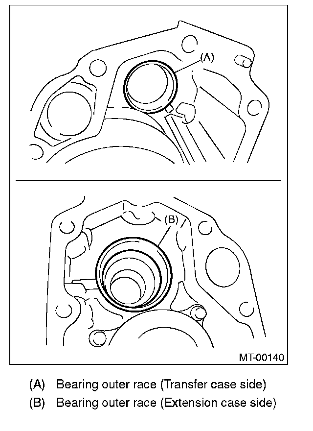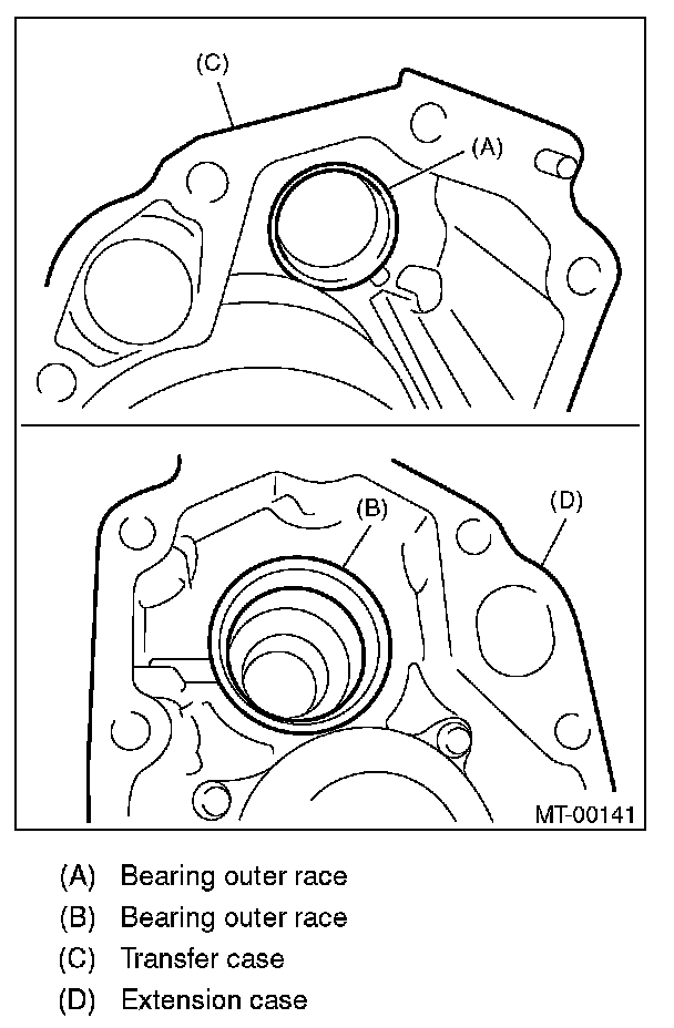 2) Remove the back-up light switch and neutral position switch. 3) Remove the transfer case together with the extension case assembly.