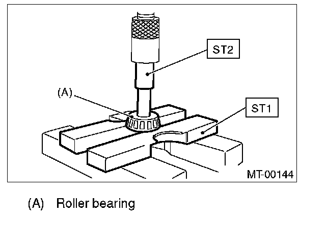 2) Using ST1 and ST2, remove the roller bearing (transfer case side).