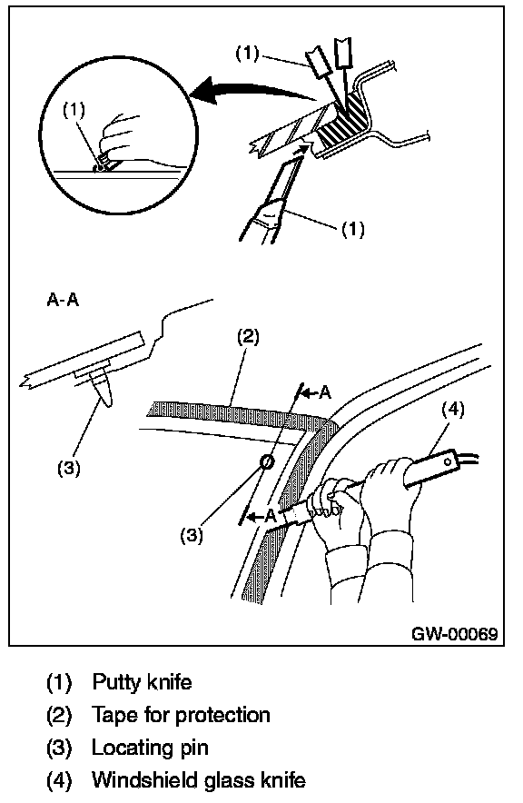 - Cutting of adhesive part shall be started with wider gap between windshield glass and body.