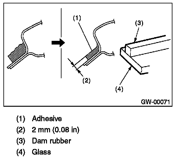 - For minimum drying time and vehicle standing time before driving after bonding, follow instructions or instruction manual from the adhesive manufacturer.