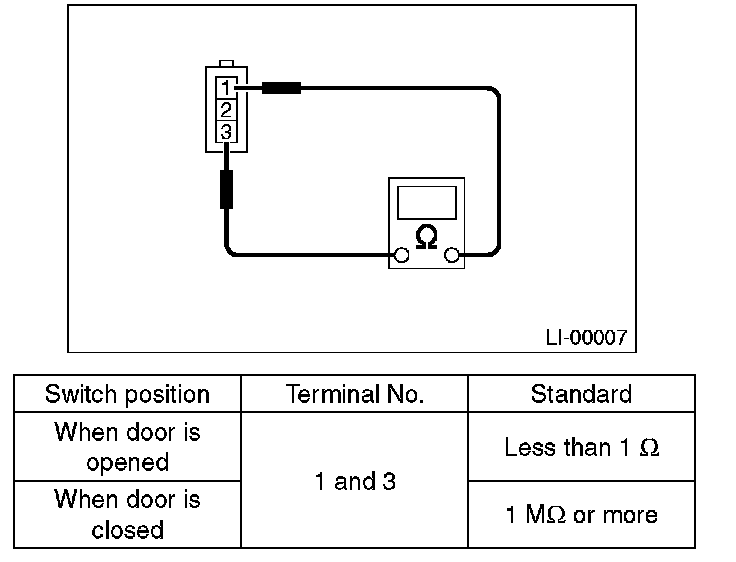 Measure the resistance between door switch terminals.