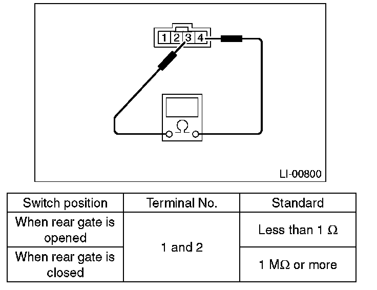 Measure the resistance between rear gate latch switch terminals.