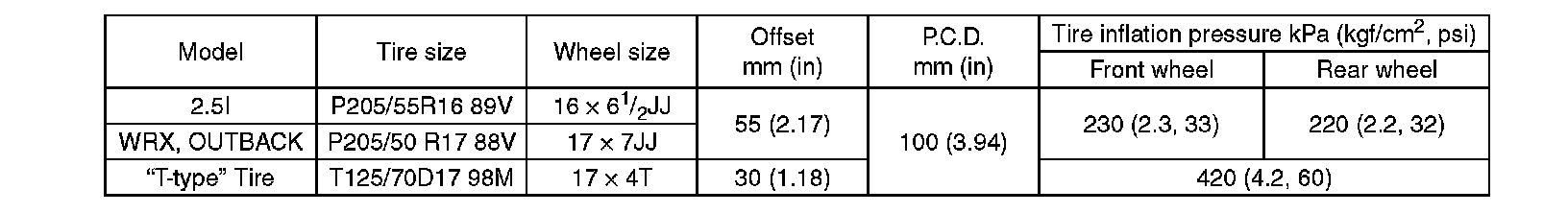 "T-type" tire for temporary use is equipped as a spare tire.