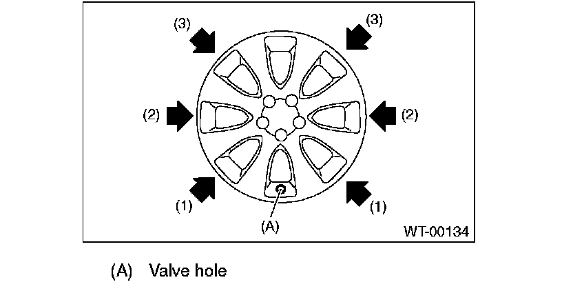2) Install the hubcap by tapping it in the order from 1) to 3) described in the figure.