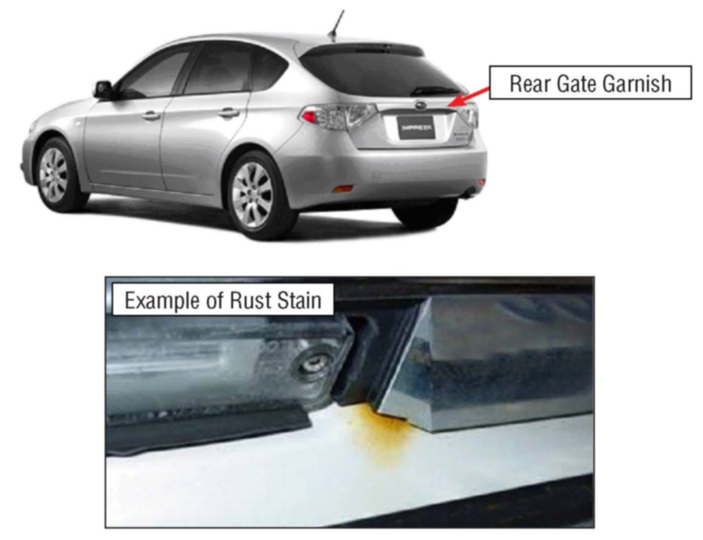 (A) Rear Gate Garnish Bolt Rust Stain Example