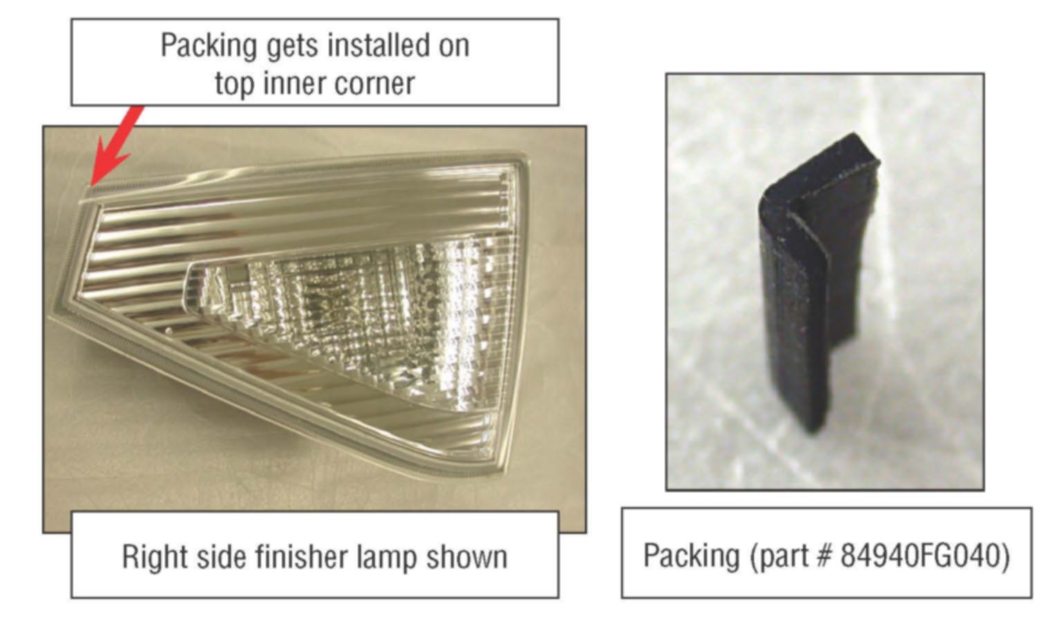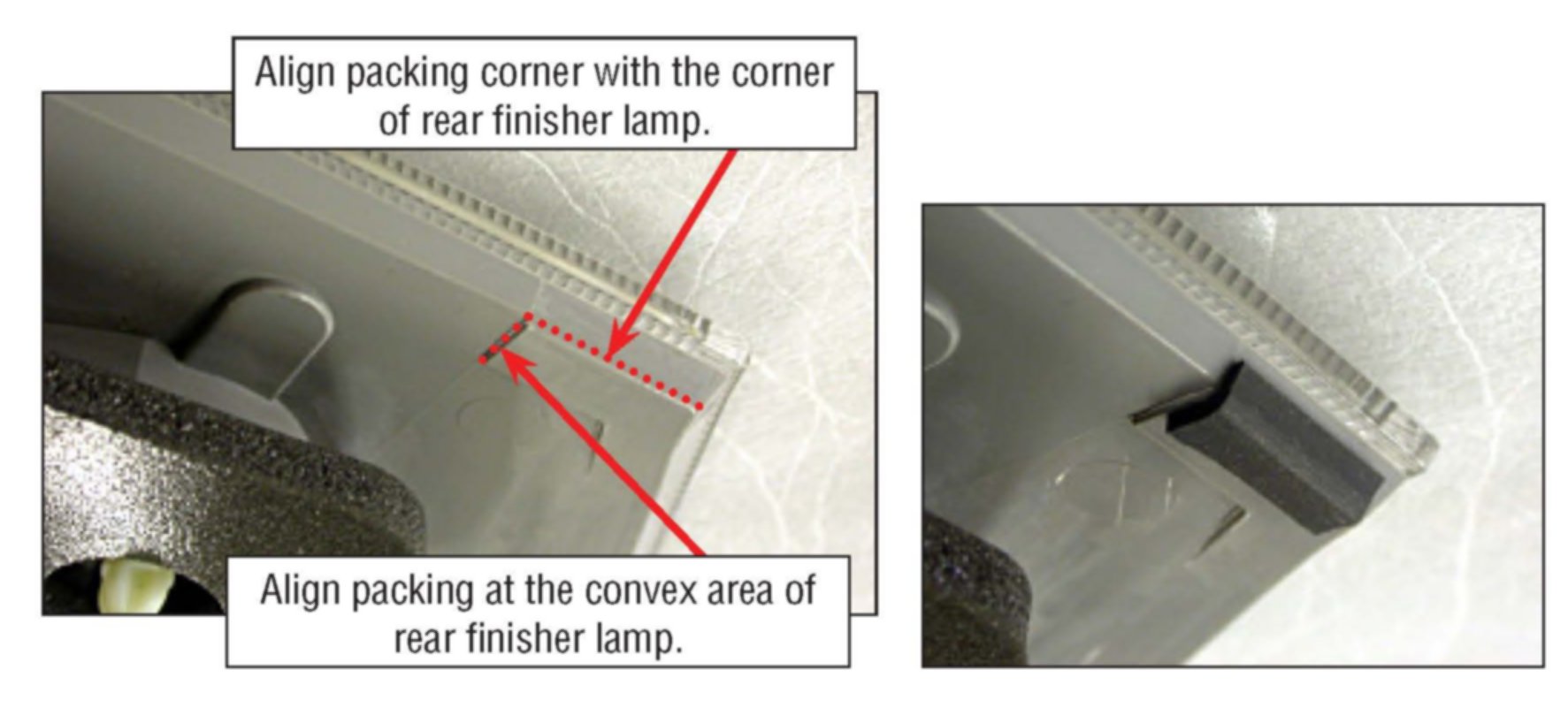 Make sure finisher lamp is room temperature clean and dry before installing packing.