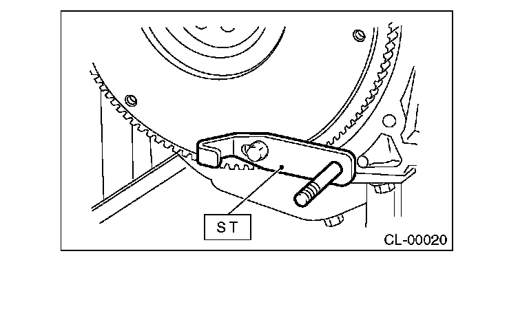 2) Tighten the flywheel mounting bolts to the specified torque.