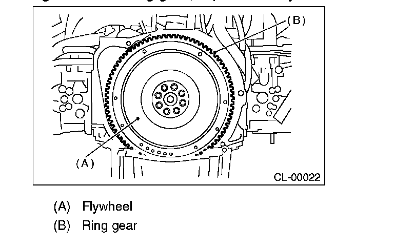 1) If there is damage or defectiveness in the facing sliding surface or ring gear, replace the flywheel.