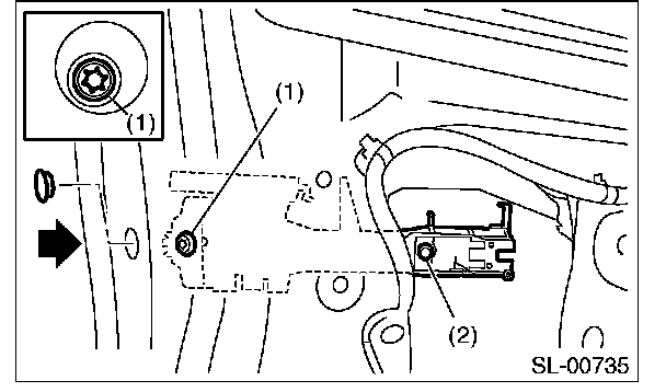 6. Loosen bolt (1), and remove the rod clamp.