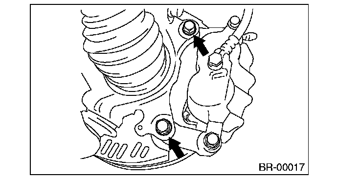 2) Remove the caliper body and the support from housing, and suspend it from the strut using a wire.