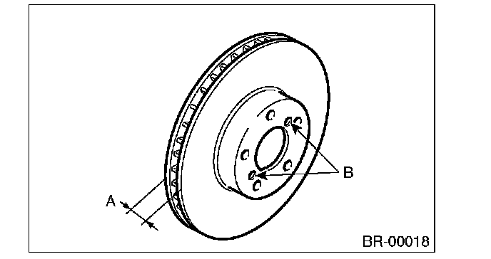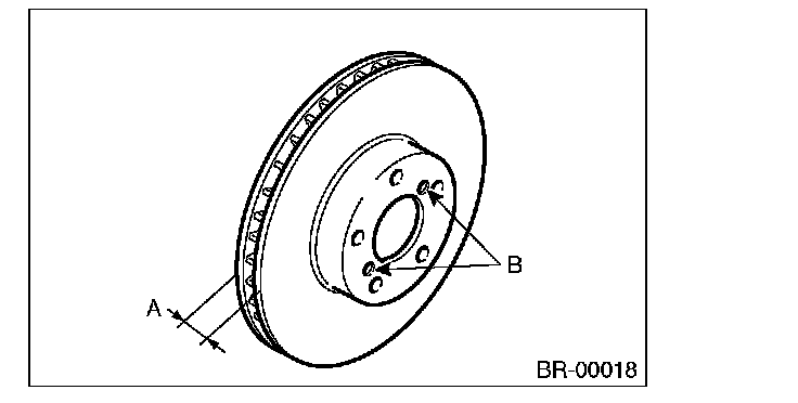 If it is difficult to remove the disc rotor from the hub, drive an 8 mm bolt into the threaded section (B) of the rotor, then remove the rotor.