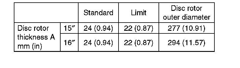 Disc rotor runout limit: 0.05 mm (0.0020 in)