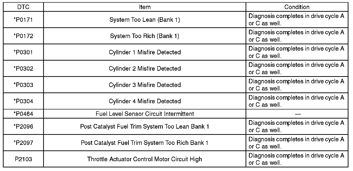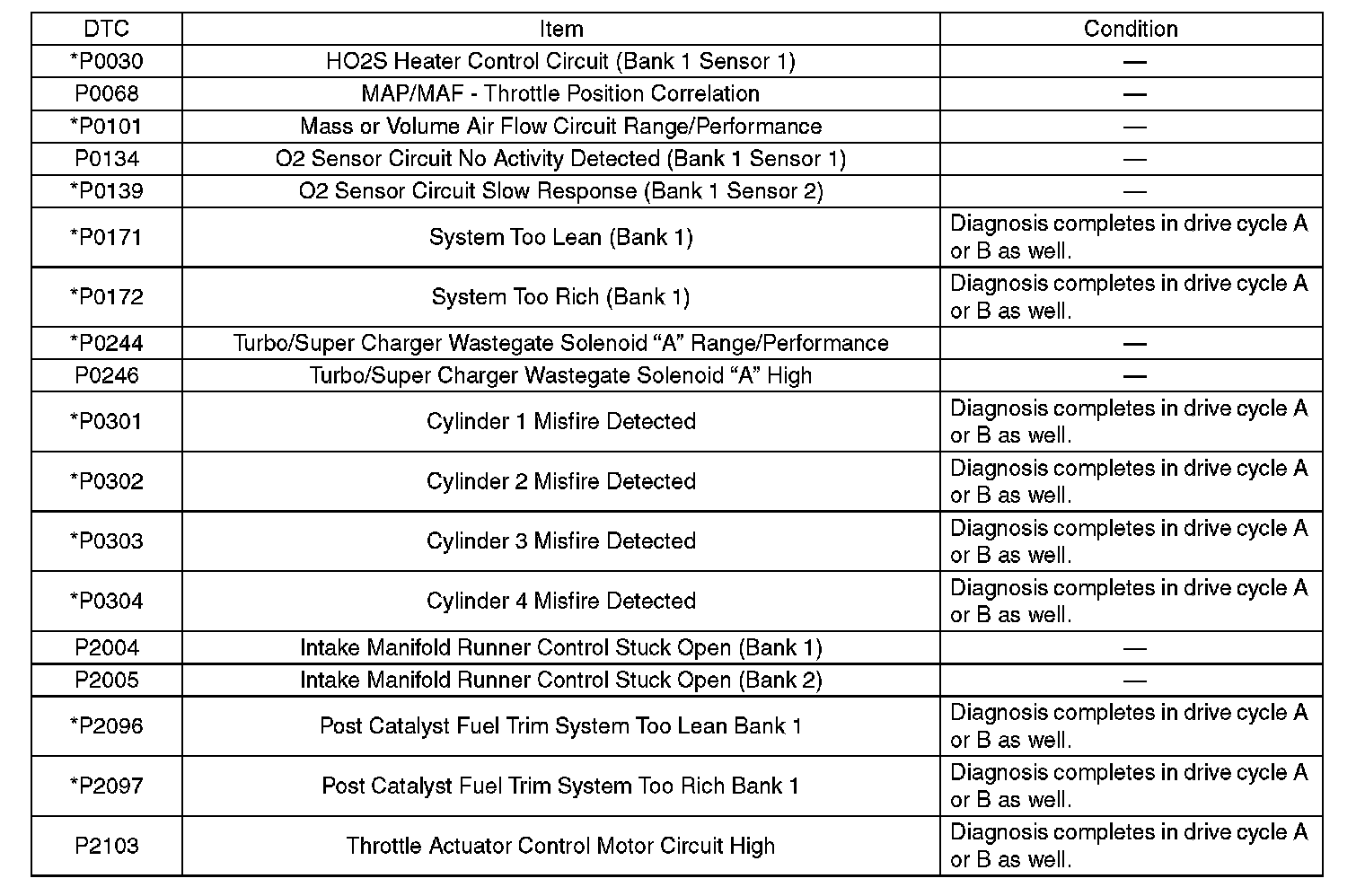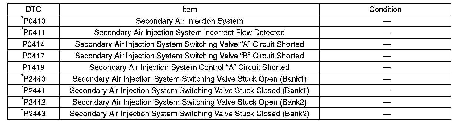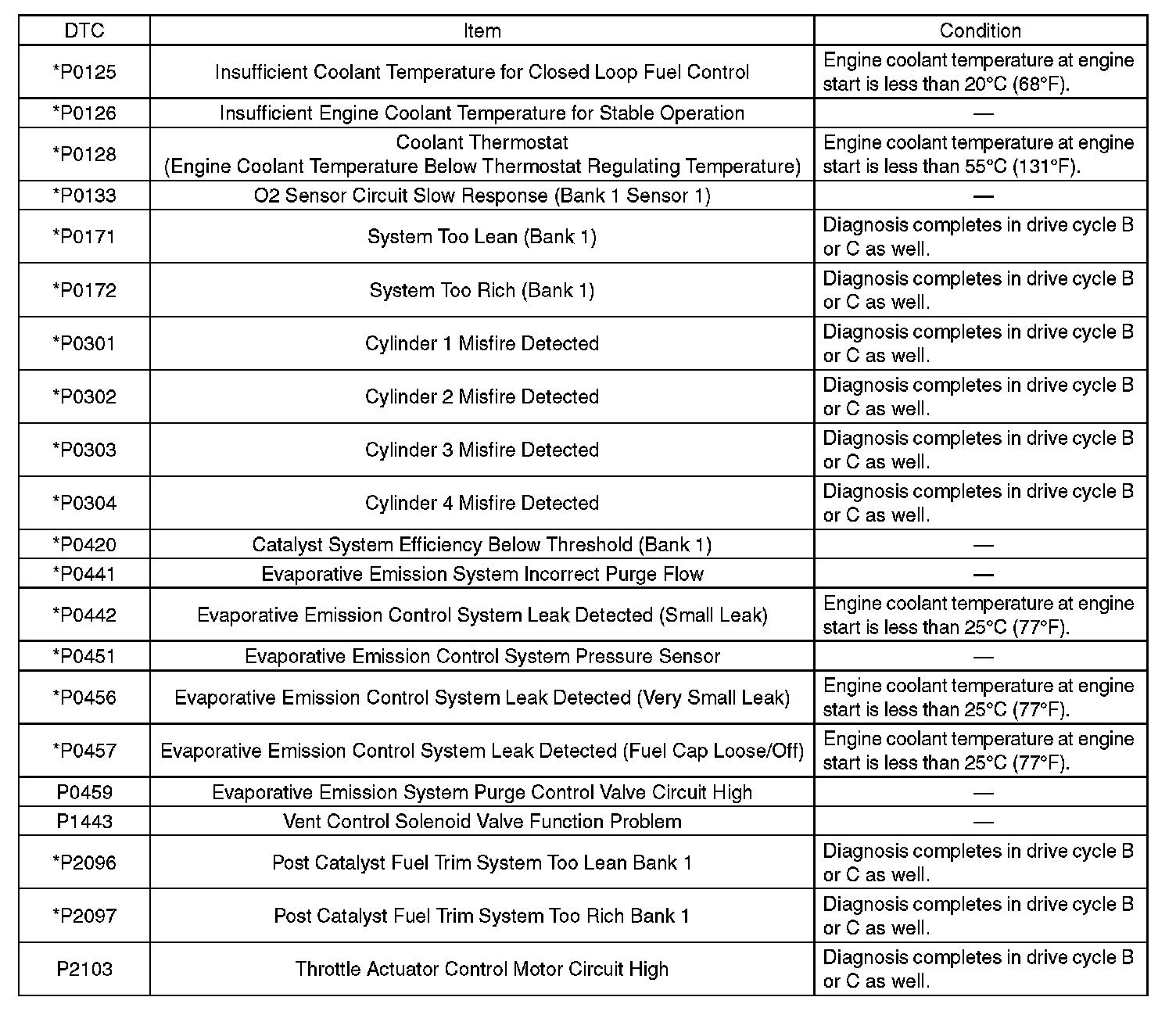 - Perform the diagnosis twice if the DTC marked with*. After completing the first diagnosis, stop the engine and perform second diagnosis in same condition.