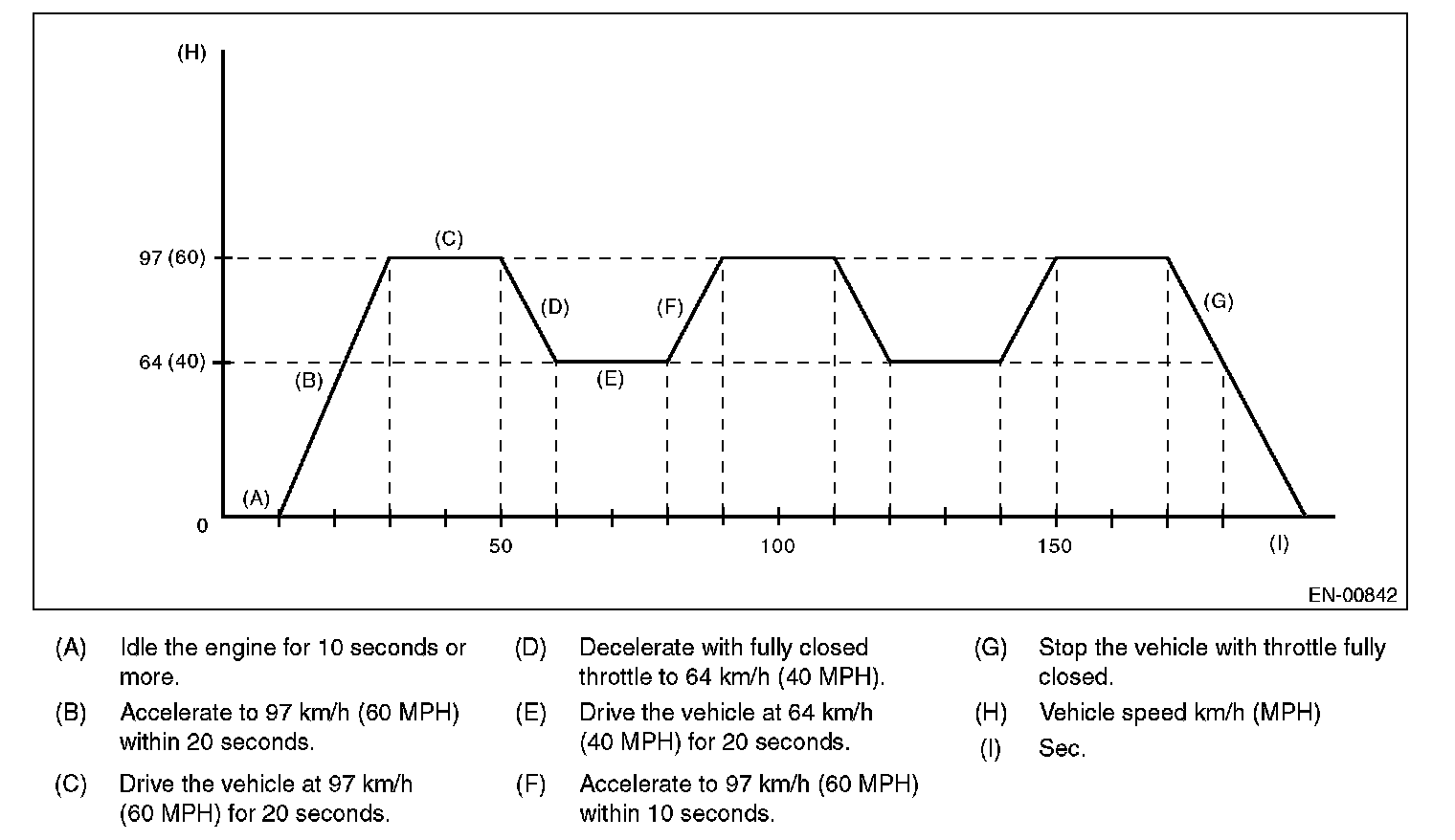 2. DRIVE CYCLE A - DRIVE THE VEHICLE WITH 80 KM/H (50 MPH) FOR 20 MINUTES, AND THEN IDLE THE ENGINE FOR A MINUTE.